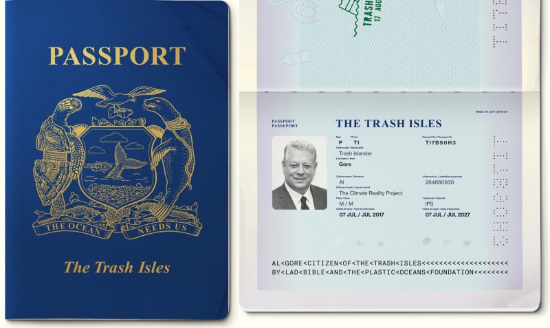 Primeiro criaram um passaporte, uma bandeira e uma moeda. Depois apresentaram às Nações Unidas uma candidatura para o reconhecimento oficial da Grande Ilha de Lixo do Pacífico como um país, chamado Ilhas de Lixo (“Trash Isles”, em inglês).